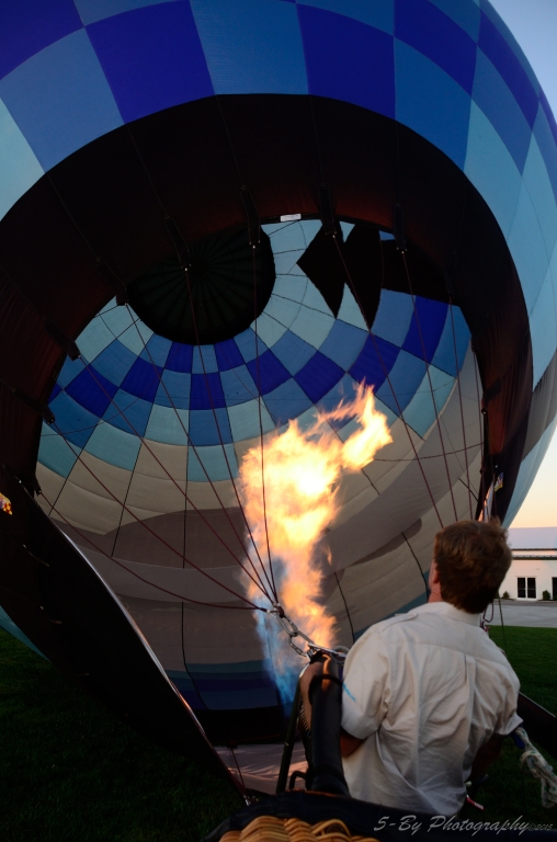 We got to help out a lot. Balloon inflating with our pilot Dan. At this point, we had just finished using a fan to open the balloon up and start the inflating process. This balloon is named Thriller, it was a smaller racing balloon.